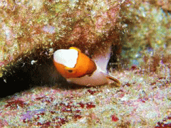 ■サンゴ→がれ地→暗くて細い洞窟の中へ。洞窟の中にはウスモモテンジクダイやリュウキュウハタンポ、ミナミハタンポ、カノコイセエビなどが。ケーブに差し込む細い光がスポットライトのようでとってもキレイ。サンゴの上にはイシガキカエルウオ。珊瑚礁がキレイで石垣島に来て初めてサンゴがきれいと思いました。