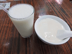 ■口当たりが滑らかな豆腐にコンデンスミルクと生姜砂糖をかけていただく豆腐花(7元)。さらっとした口当たりの豆乳(6元)。十月初五日街の裏通りで見つけた豆腐店。