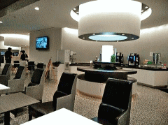 | ■午後から利用できるフロント奥のフリードリンクコーナー。 |