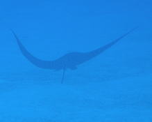 マダラトビエイが砂地の上でご休憩。そーっと近づいたけど、 あっという間にどこかに泳いでいってしまいました。遠かったのであまり良い写真が撮れませんでした。残念(・_・;)